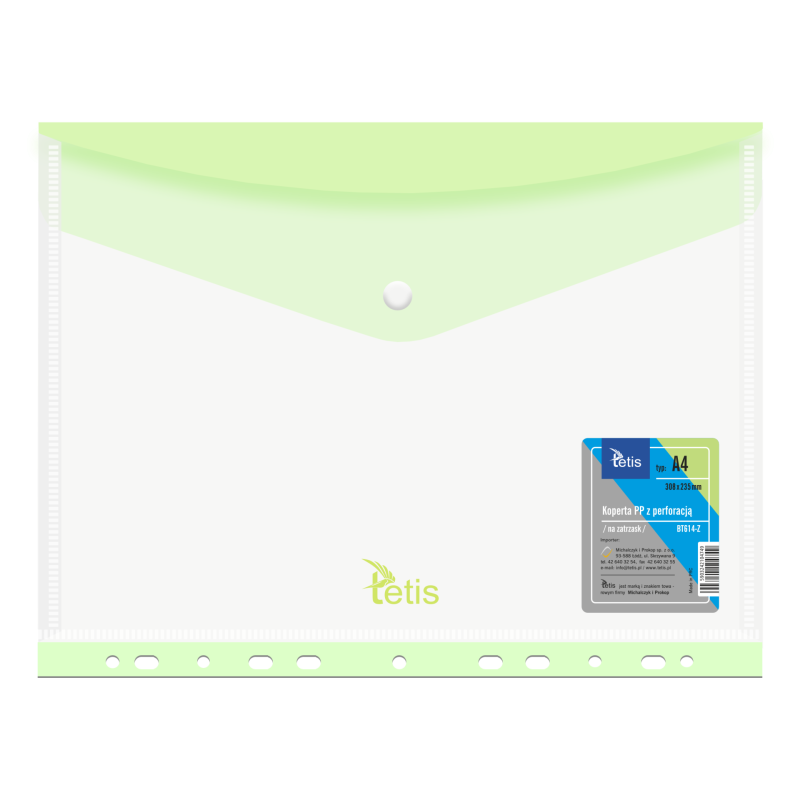 Koperta na Zatrzask A4 PP z Perforacją Zielona BT614-Z
