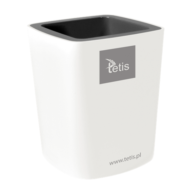 Wykonany z tworzywa sztucznego organizer. Antypoślizgowa podstawa. Wymiary: długość/szerokość/wysokość: 80 x 80 x 100 mm
