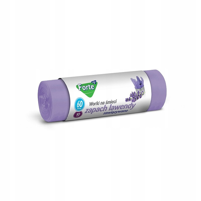 Zawiązywane zapachowe worki 60l na śmieci marki Forte+ wykonane są w 100% z surowców pochodzących z recyklingu. Pozyskane są w procesie segregacji odpadów foliowych. Praktyczne wypustki w górnej części worka pozwalają na jego szybkie i higieniczne zawiązanie oraz wygodne przeniesienie śmieci do kontenera. Zgrzew dna typu gwiazda sprawia, iż idealnie dopasowują się do różnych typów i kształtów pojemników na śmieci. Worki są grube a co za tym idzie - szczelne. Folia produkowana tą metodą uzyskuje maksymalne parametry wytrzymałościowe przy znacznie mniejszej grubości w stosunku do folii tradycyjnej. Worki posiadają przyjemny zapach lawenda.