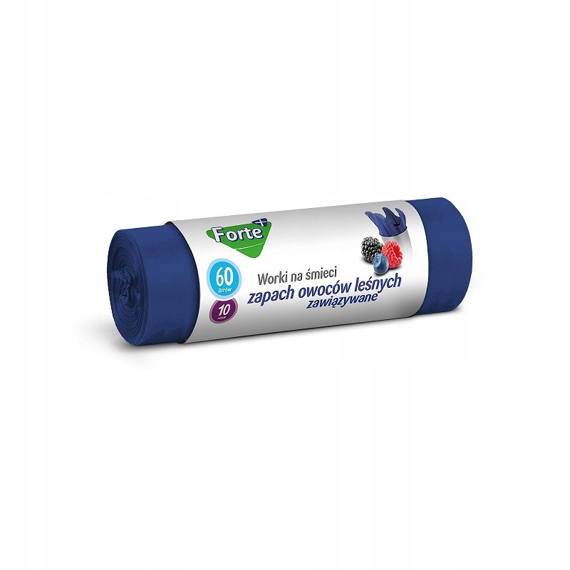 Zawiązywane zapachowe worki 60l na śmieci marki Forte+ wykonane są w 100% z surowców pochodzących z recyklingu. Pozyskane są w procesie segregacji odpadów foliowych. Praktyczne wypustki w górnej części worka pozwalają na jego szybkie i higieniczne zawiązanie oraz wygodne przeniesienie śmieci do kontenera. Zgrzew dna typu gwiazda sprawia, iż idealnie dopasowują się do różnych typów i kształtów pojemników na śmieci. Worki są grube a co za tym idzie - szczelne. Folia produkowana tą metodą uzyskuje maksymalne parametry wytrzymałościowe przy znacznie mniejszej grubości w stosunku do folii tradycyjnej. Worki posiadają przyjemny zapach owoce leśne.