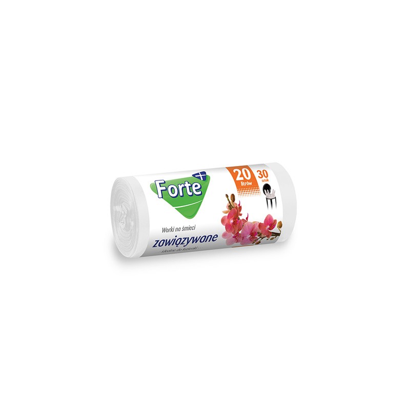 Zawiązywane worki na śmieci marki Forte+ są wykonane w 100% z surowców pochodzących z recyklingu resztek poprzemysłowych i poprodukcyjnych oraz pozyskanych w procesie segregacji odpadów foliowych z wysypisk śmieci. Praktyczne wypustki w górnej części worka pozwalają na jego szybkie i higieniczne zawiązanie oraz wygodne przeniesienie śmieci do kontenera. Zgrzew typu gwiazda sprawia, iż idealnie dopasowują się do różnych typów i kształtów pojemników na śmieci. Worki wykonano z wyjątkowo z wyjątkowo mocnej folii trójwarstwowej LDPE, dzięki czemu gwarantują 100% szczelności. Folia produkowana tą metodą uzyskuje maksymalne parametry wytrzymałościowe przy znacznie mniejszych grubościach w stosunku do folii tradycyjnych (jednowarstwowych), tym samym redukując masę tworzyw sztucznych w środowisku